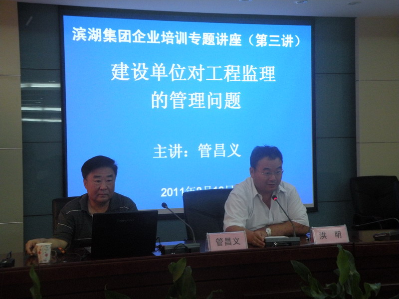 8月19日,,,,,集團組織開展企業(yè)培訓專題講座(第三講),,,,,聘請工程建設與監(jiān)理方面專家管昌義教授在集團報告廳做了題為“建設單位對工程監(jiān)理的管理問題”的專題講座,,,,,集團分管工程的領導,,,,,集團各部門副經理以上人員,,,,,集團工程管理部、成本控制部全體人員,,,,,子公司分管工程的領導以及所有工程管理人員、項目前期工作人員聆聽了報告。。。。。。。