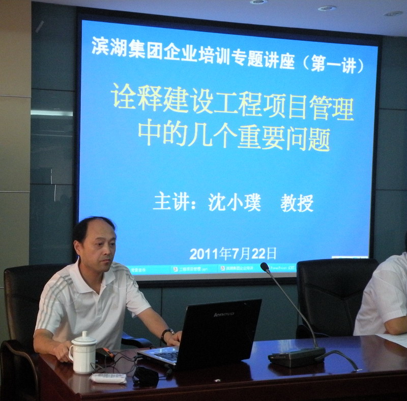 7月22日,,,,,,,,集團(tuán)聘請建工學(xué)院博士、碩士生導(dǎo)師沈小璞教授在集團(tuán)報告廳做了題為“詮釋建設(shè)工程項目管理中的幾個重要問題”的專題講座,,,,,,,,集團(tuán)班子成員、各部門負(fù)責(zé)人、各子公司分管工程的領(lǐng)導(dǎo),,,,,,,,全體工程管理人員聆聽了報告。。。 。。。。。