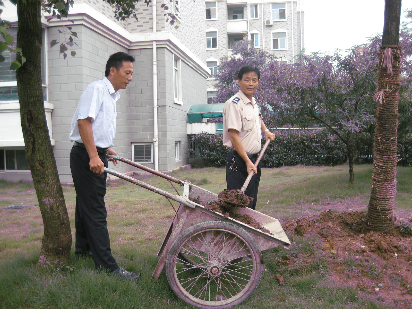 近日來由于持續降雨,,,,,,,,為了能保障小區雨污水井的暢通,,,,,,,,同時也為了美化小區的綠化,,,,,,,,建設小區的所有物業工作人員,,,,,,,,不畏辛苦,,,,,,,,清掏淤泥,,,,,,,,并廢物利用,,,,,,,,將清掏出來的污泥當作肥料埋在了樹根下,,,,,,,,節能環保一舉兩得。。。。。。。。